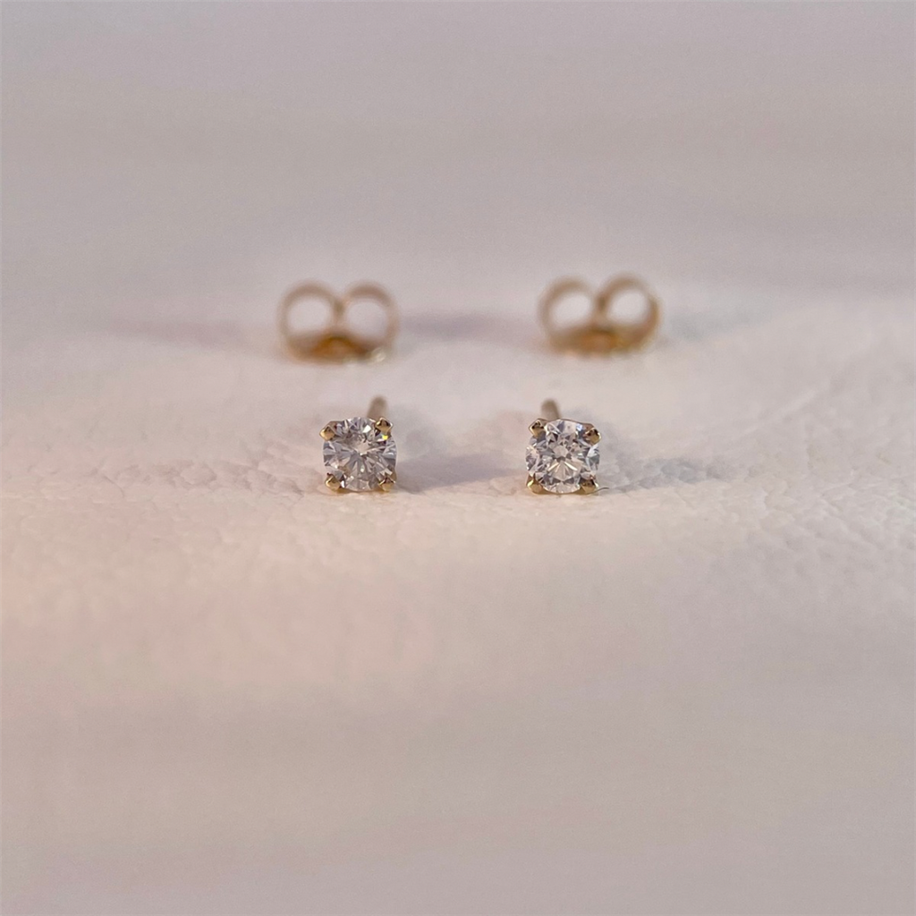 14K yellow gold diamond stud earrings with approximately .20ct of natural round diamonds.