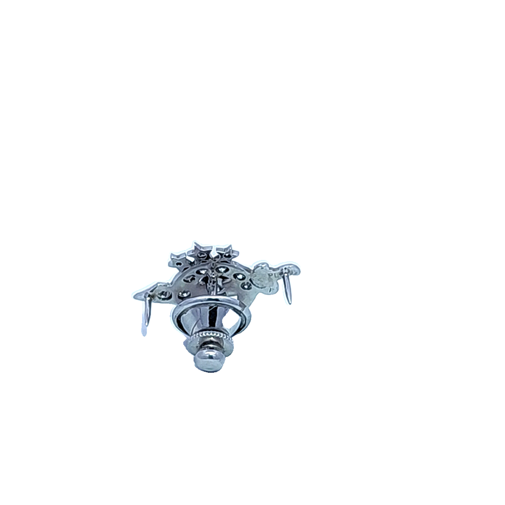 Estate-Designed in lustrous white gold and adorned with glistening diamonds, this pin is dedicated to symbolize the distinguished legacy of the beloved Shriner's fraternity.